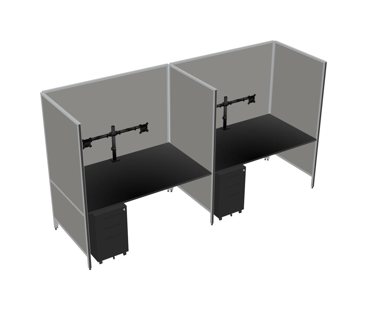 Système De Panneaux Flexibles Noirs Pour 2 Tiroirs Mobiles En Métal + Bras Pour écran (double Bras)