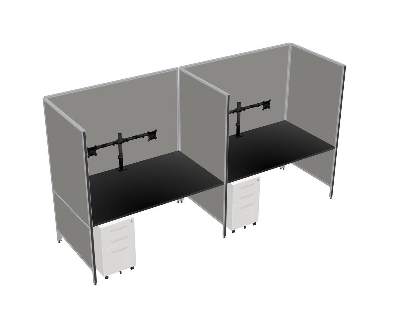 Système De Panneaux Flexibles Noirs Pour 2 Tiroirs Mobiles En Métal + Bras Pour écran (double Bras)