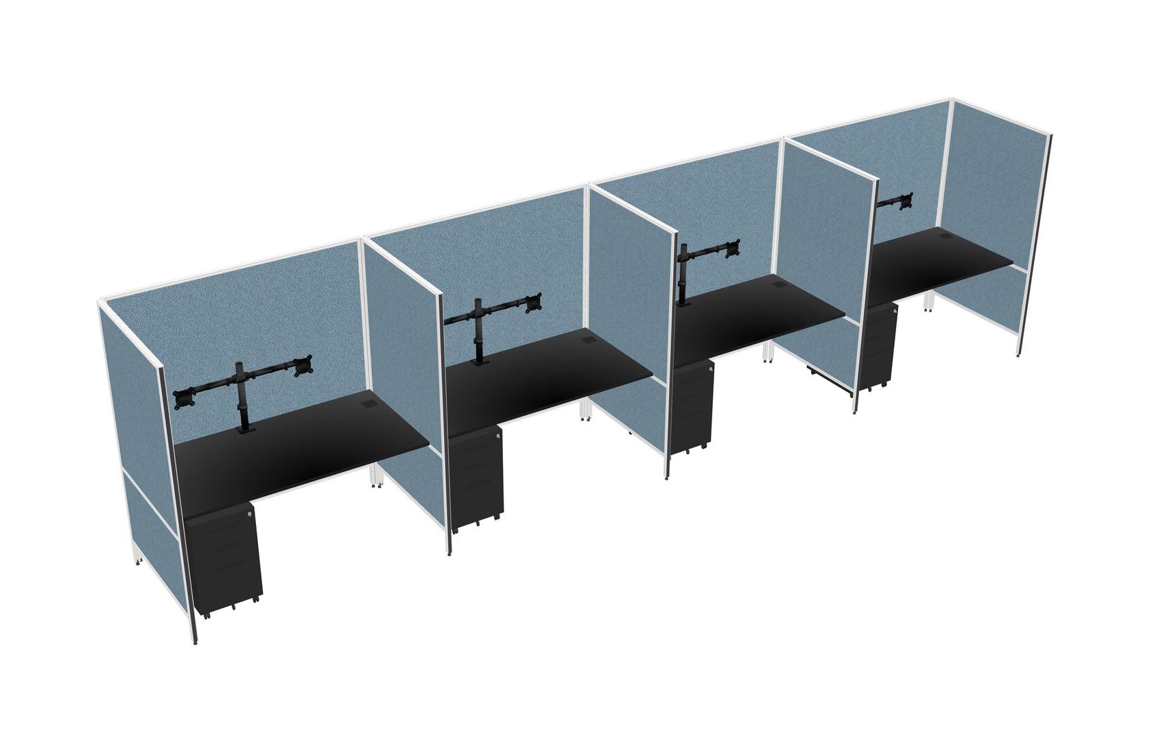 Système De Panneaux Flexibles Noirs Pour 4 Tiroirs Mobiles En Métal + Bras Pour écran (double Bras)
