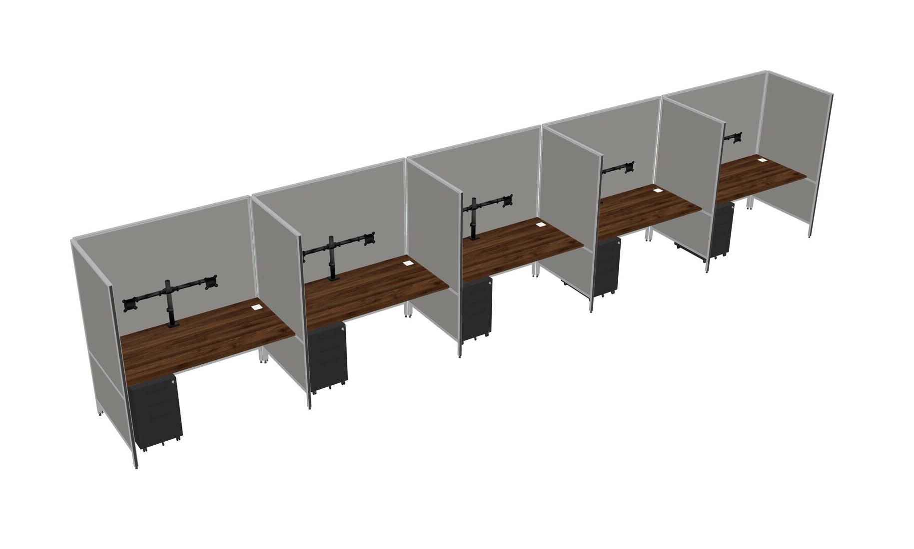 Système De Panneaux Flexibles En Noyer Columbia Pour 5 Tiroirs Mobiles En Métal + Bras Pour écran (double Bras)