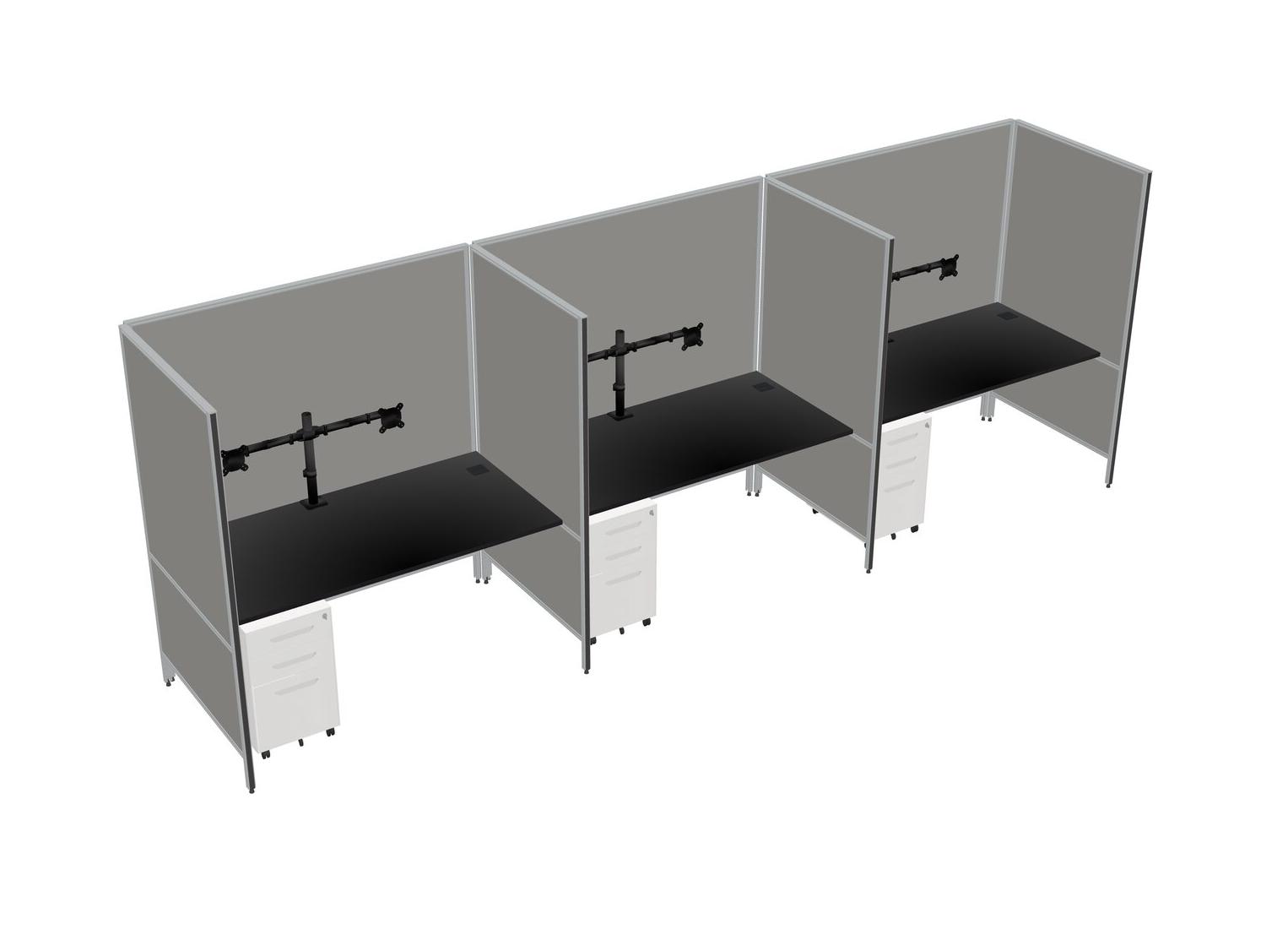 Système De Panneaux Flexibles Noirs Pour 3 Tiroirs Mobiles En Métal + Bras Pour écran (double Bras)