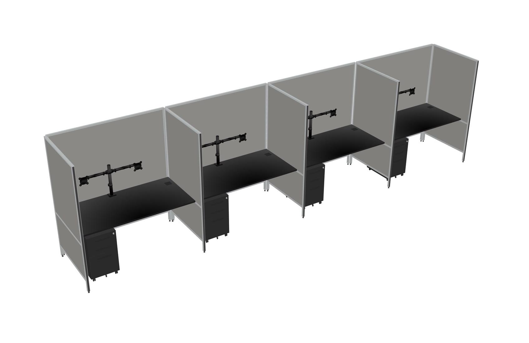 Système De Panneaux Flexibles Noirs Pour 4 Tiroirs Mobiles En Métal + Bras Pour écran (double Bras)