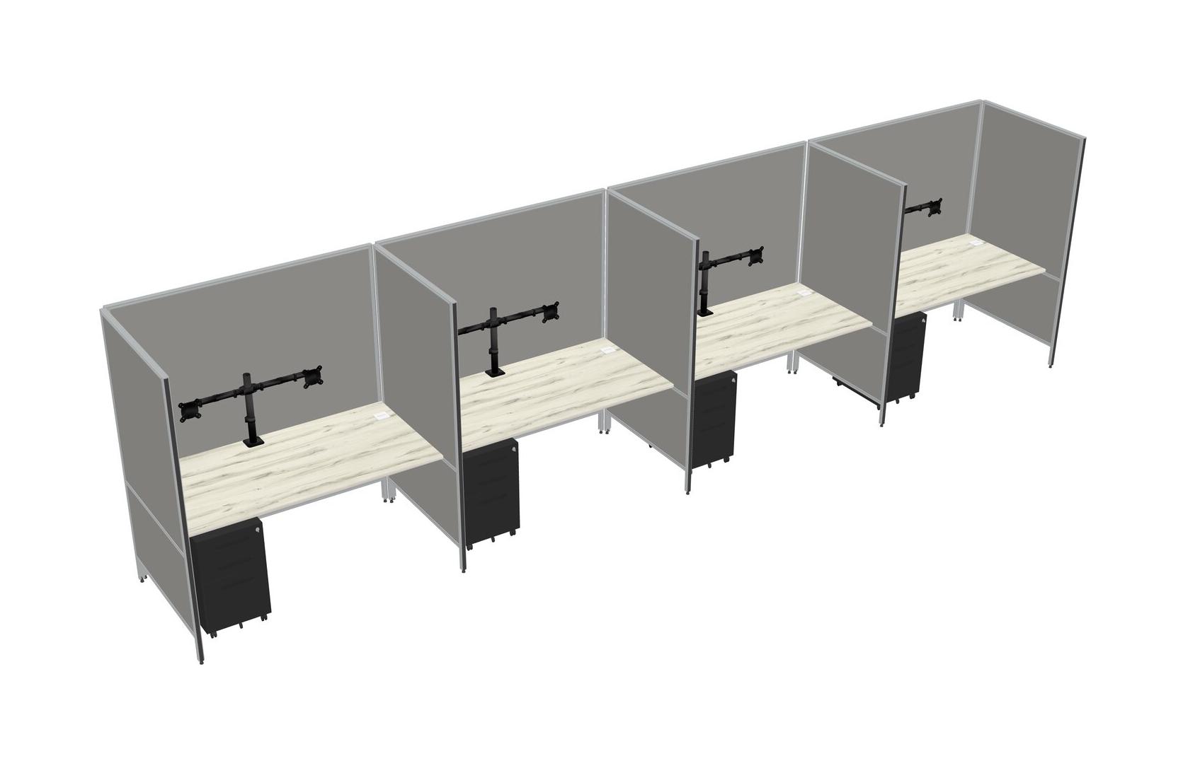 Système De Panneaux Flexibles Heinne Holz Pour 4 Tiroirs Mobiles Métalliques + Bras Pour écran (double Bras)