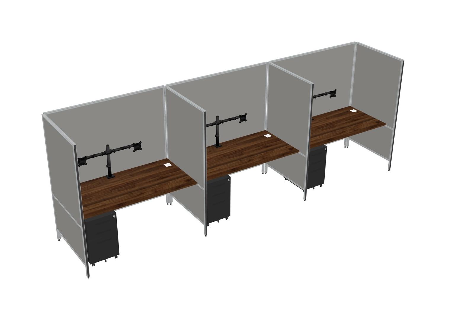 Système De Panneaux Flexibles En Noyer Columbia Pour 3 Tiroirs Mobiles En Métal + Bras Pour écran (double Bras)