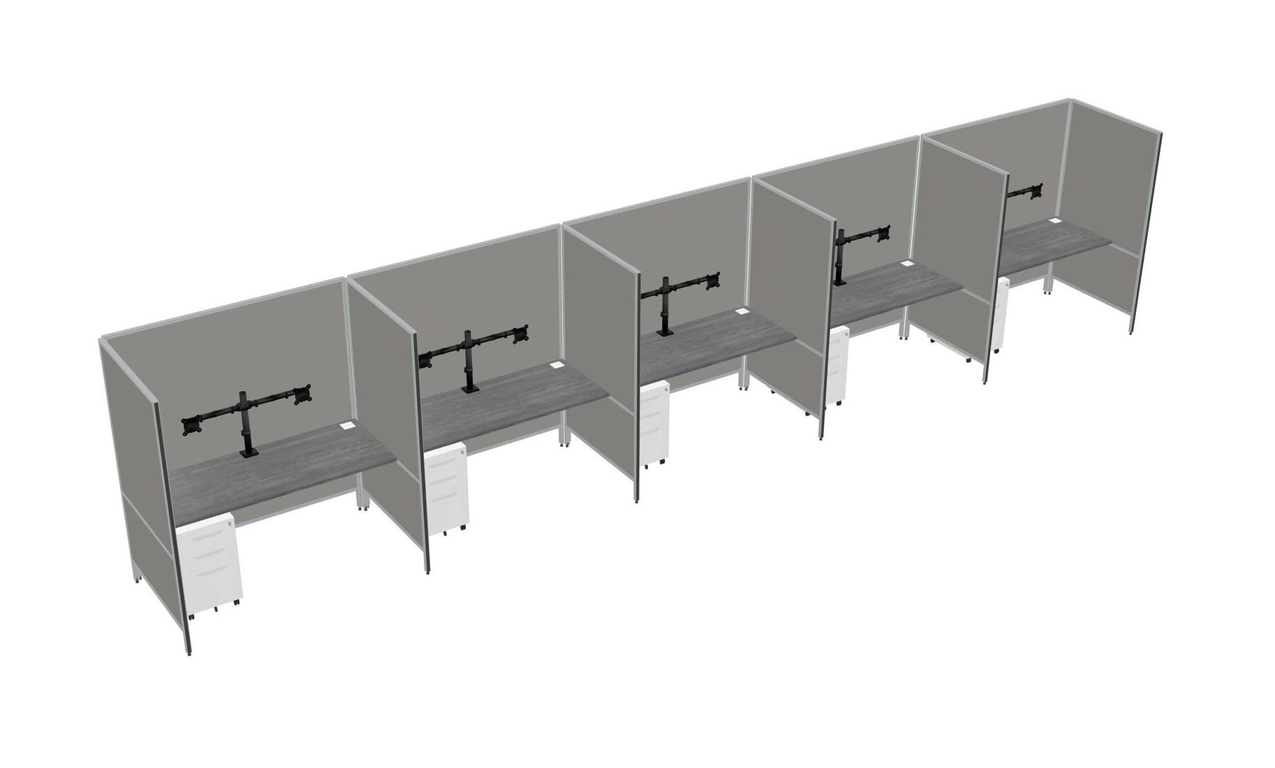 Système De Panneaux Flexibles Gris Pour 5 Tiroirs Mobiles Métalliques + Bras Pour écran (double Bras)