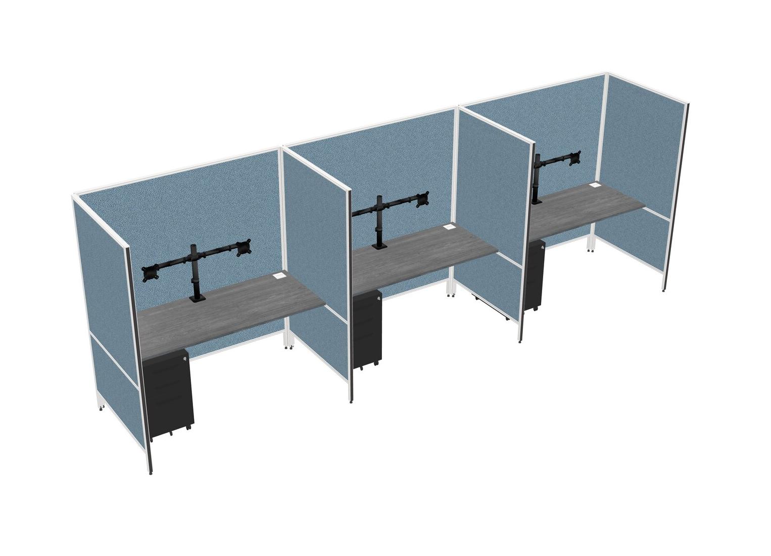 Système De Panneaux Flexibles Gris Pour 3 Tiroirs Mobiles En Métal + Bras Pour écran (double Bras)