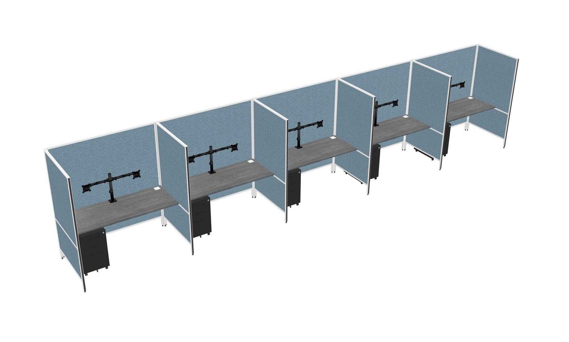 Système De Panneaux Flexibles Gris Pour 5 Tiroirs Mobiles Métalliques + Bras Pour écran (double Bras)