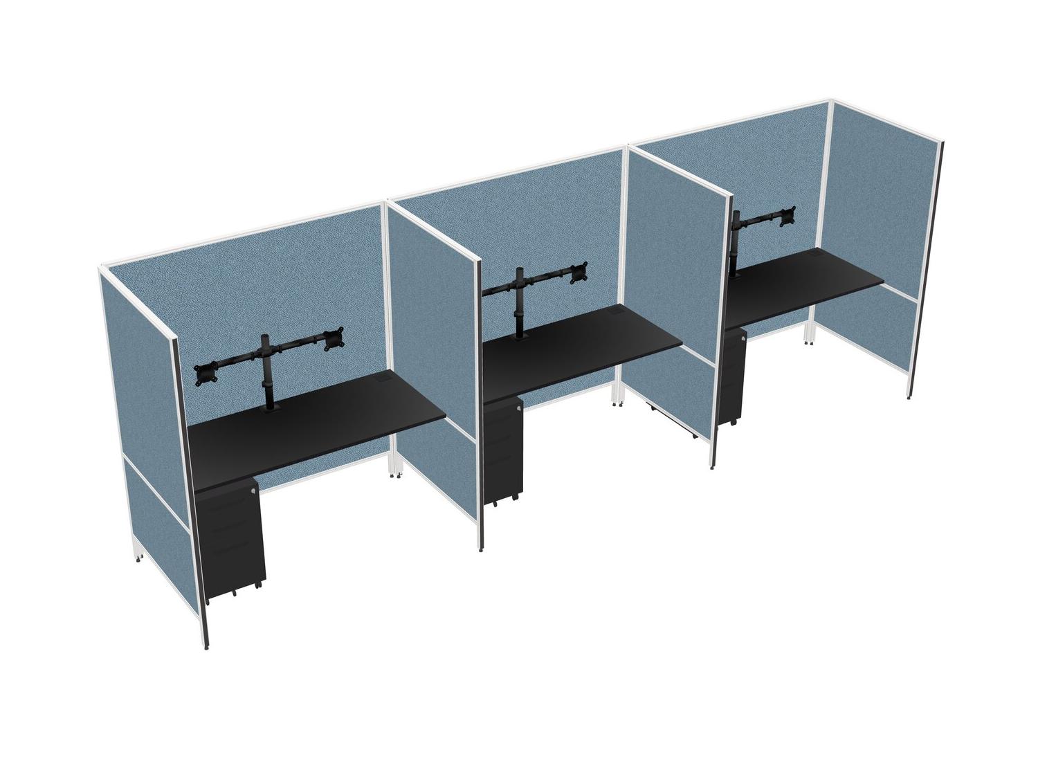 Système De Panneaux Flexibles Noirs Pour 3 Tiroirs Mobiles En Métal + Bras Pour écran (double Bras)