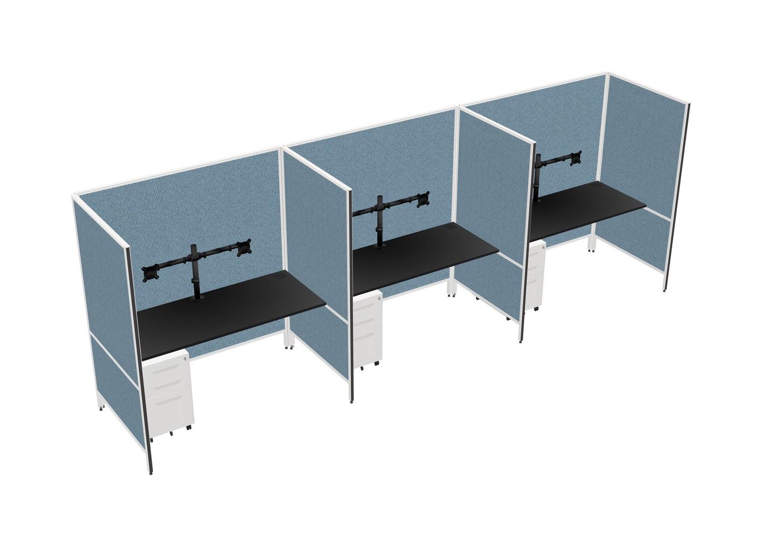 Système De Panneaux Flexibles Noirs Pour 3 Tiroirs Mobiles En Métal + Bras Pour écran (double Bras)