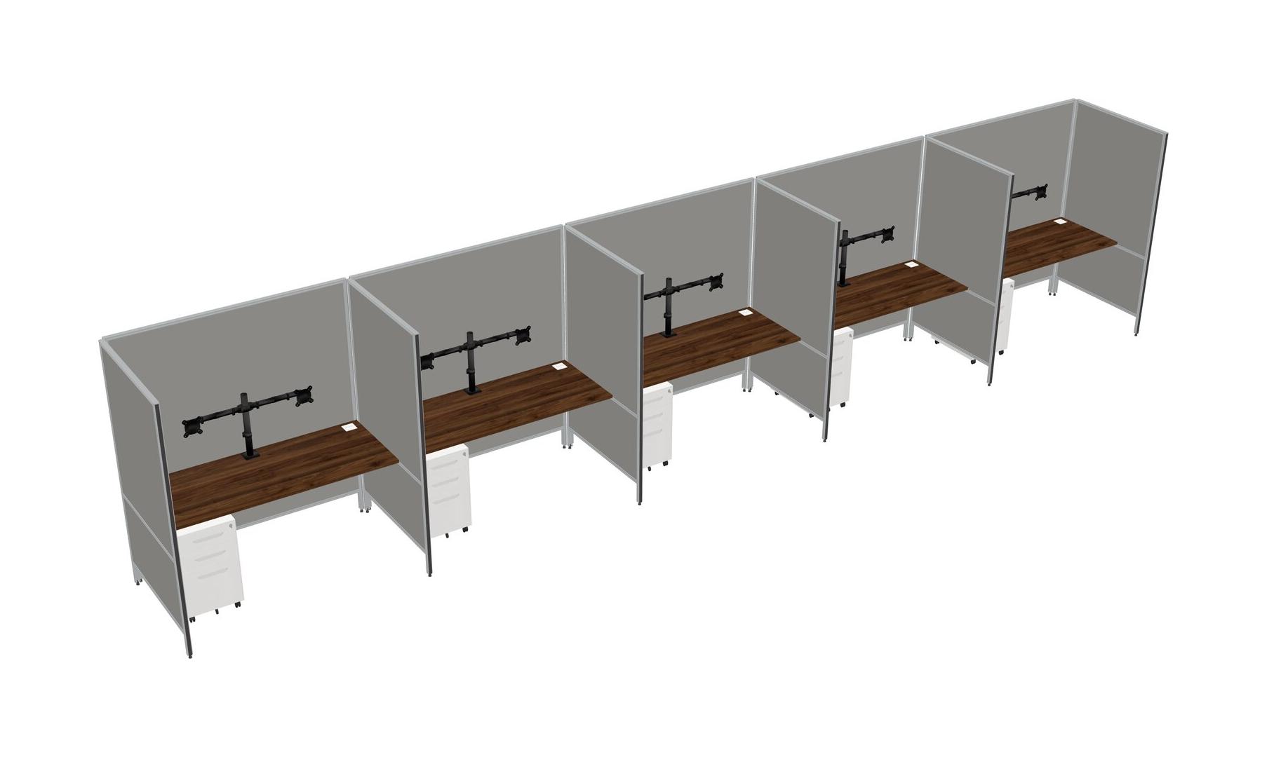 Système De Panneaux Flexibles En Noyer Columbia Pour 5 Tiroirs Mobiles En Métal + Bras Pour écran (double Bras)
