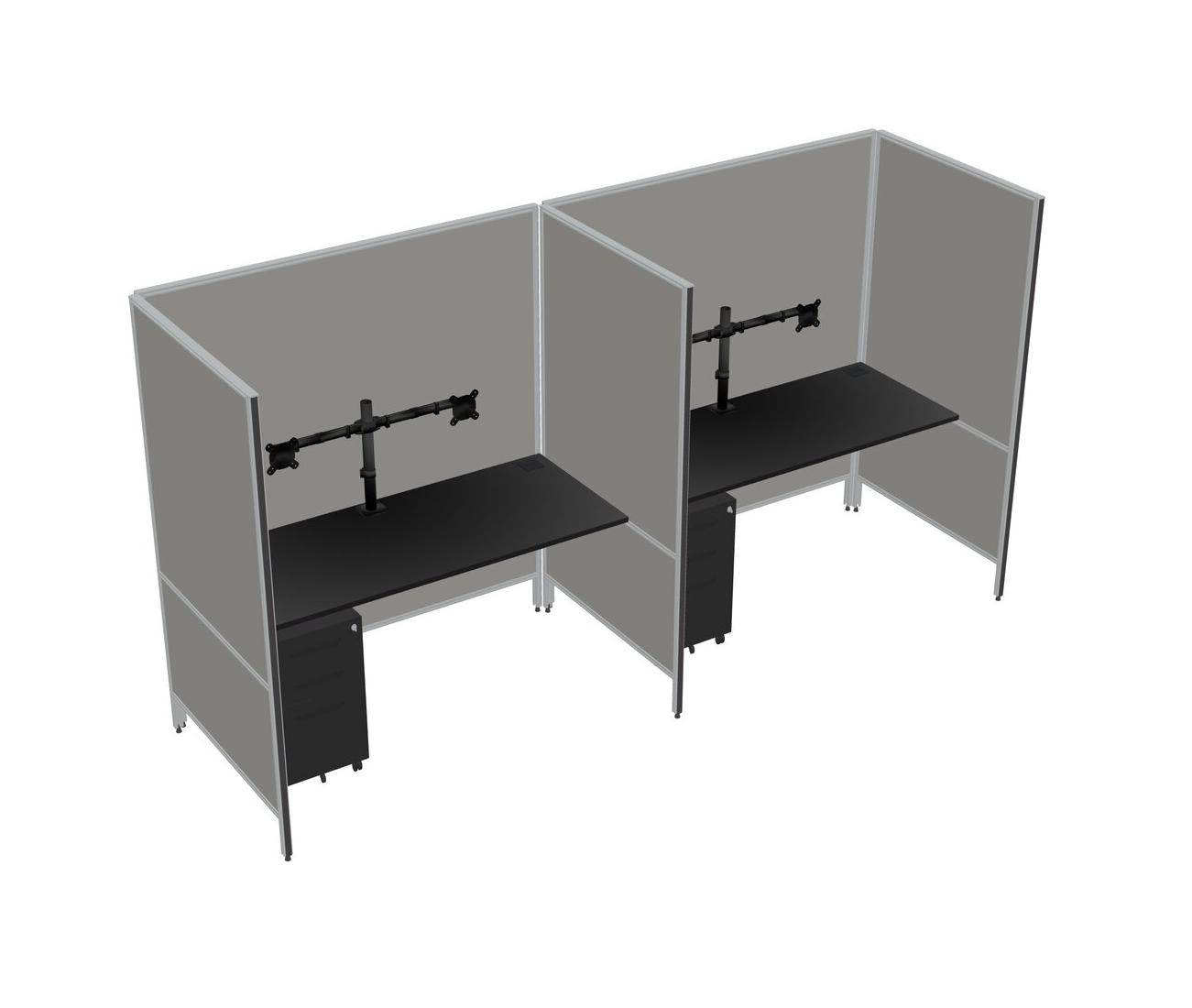 Système De Panneaux Flexibles Noirs Pour 2 Tiroirs Mobiles En Métal + Bras Pour écran (double Bras)