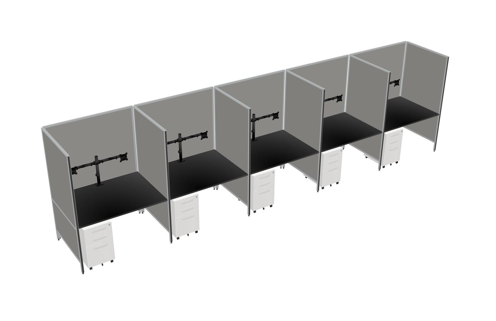 Système De Panneaux Flexibles Noirs Pour 5 Tiroirs Mobiles En Métal + Bras Pour écran (double Bras)