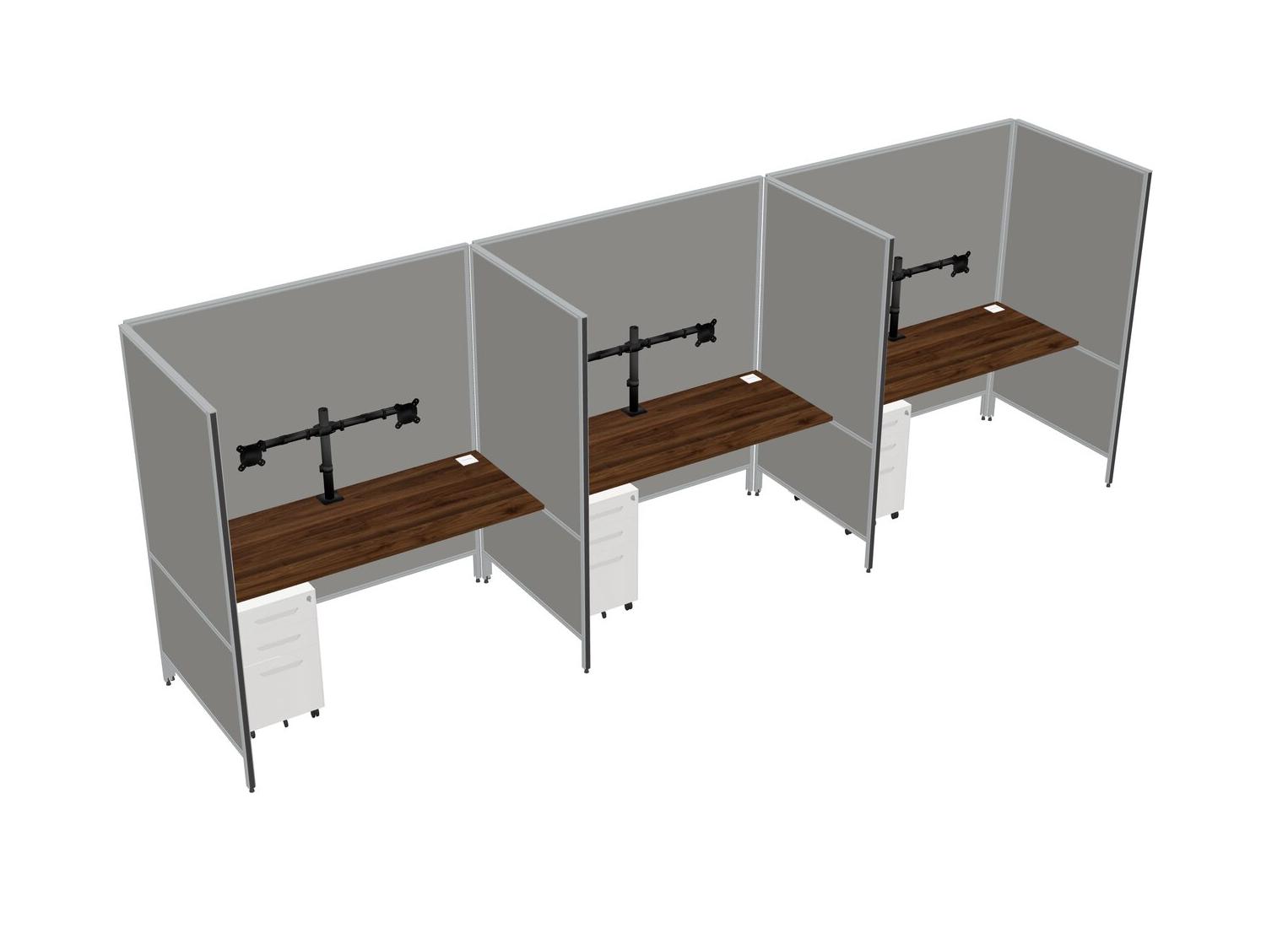 Système De Panneaux Flexibles En Noyer Columbia Pour 3 Tiroirs Mobiles En Métal + Bras Pour écran (double Bras)