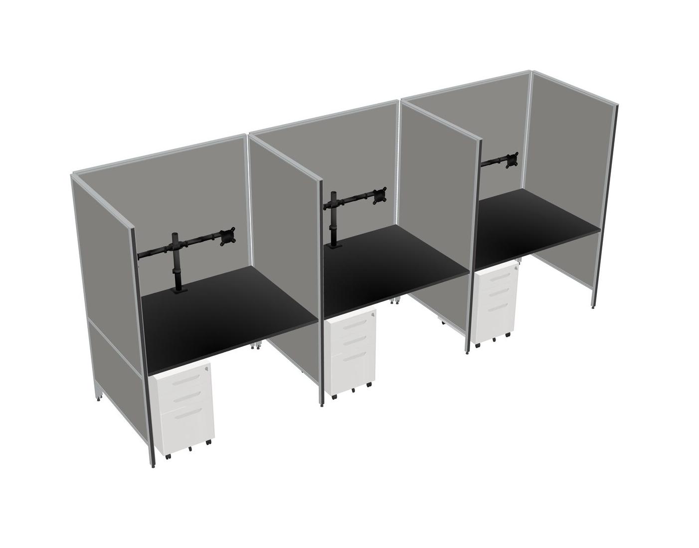 Système De Panneaux Flexibles Noirs Pour 3 Tiroirs Mobiles En Métal + Bras Pour écran (double Bras)