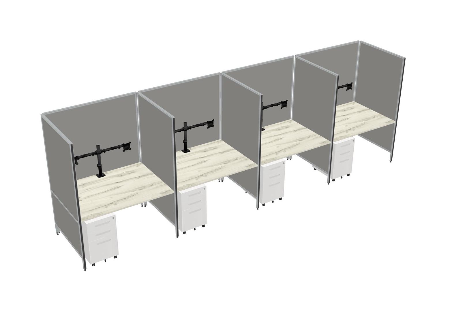 Système De Panneaux Flexibles Heinne Holz Pour 4 Tiroirs Mobiles Métalliques + Bras Pour écran (double Bras)