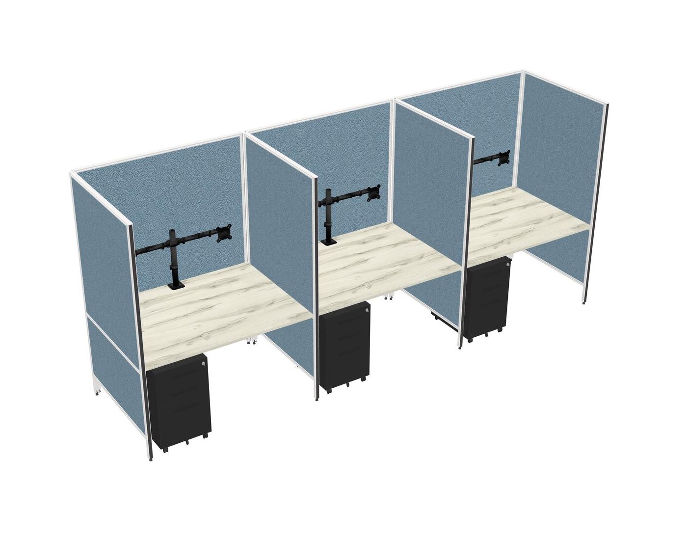 Système De Panneaux Flexibles Heinne Holz Pour 3 Tiroirs Mobiles Métalliques + Bras Pour écran (double Bras)