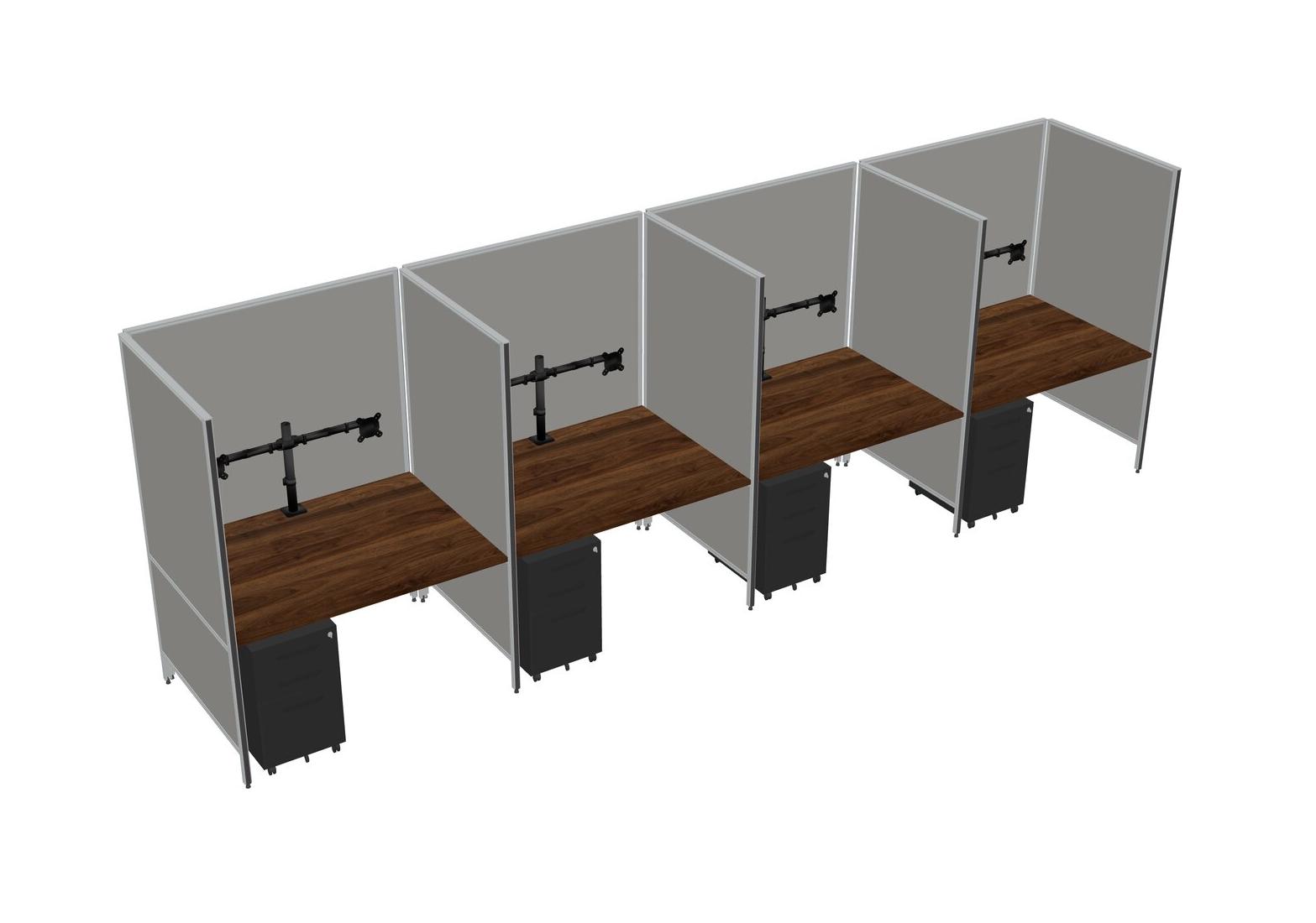 Système De Panneaux Flexibles En Noyer Columbia Pour 4 Tiroirs Mobiles En Métal + Bras Pour écran (double Bras)