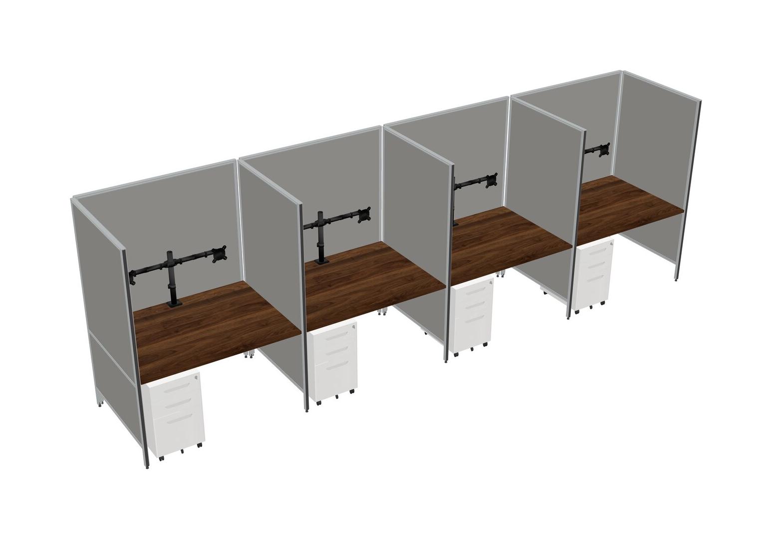 Système De Panneaux Flexibles En Noyer Columbia Pour 4 Tiroirs Mobiles En Métal + Bras Pour écran (double Bras)