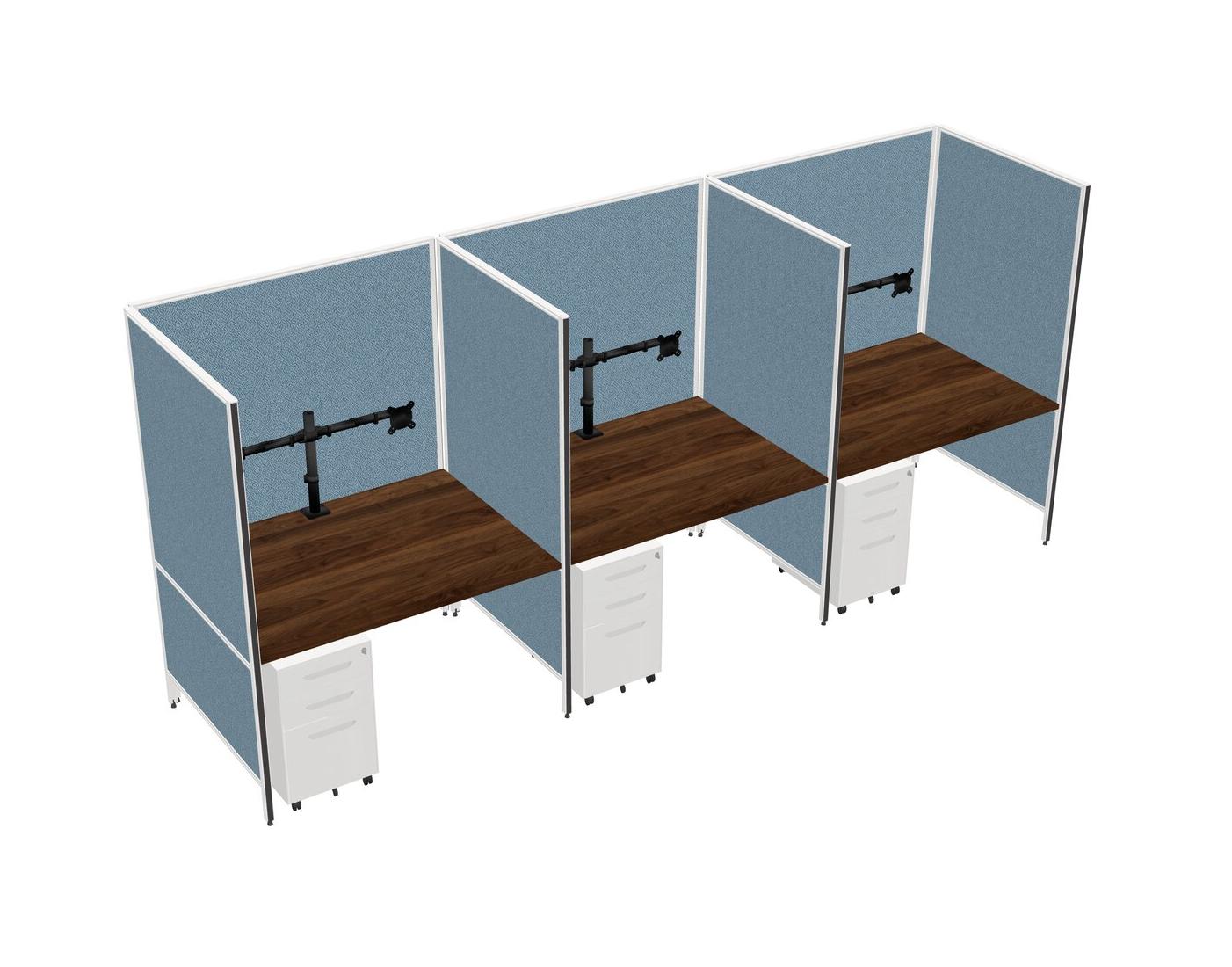 Système De Panneaux Flexibles En Noyer Columbia Pour 3 Tiroirs Mobiles En Métal + Bras Pour écran (double Bras)