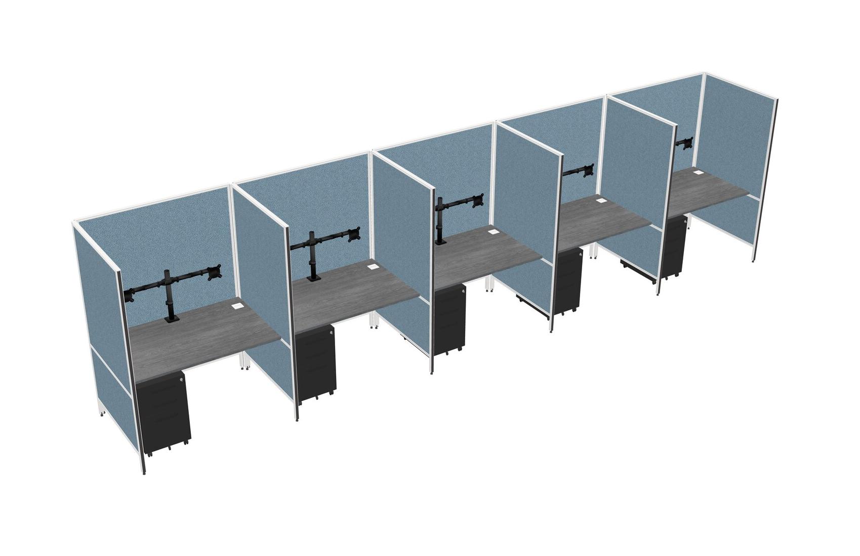 Système De Panneaux Flexibles Gris Pour 5 Tiroirs Mobiles Métalliques + Bras Pour écran (double Bras)