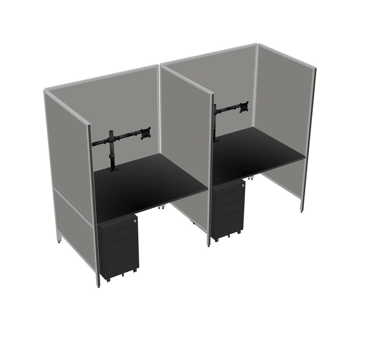 Système De Panneaux Flexibles Noirs Pour 2 Tiroirs Mobiles En Métal + Bras Pour écran (double Bras)