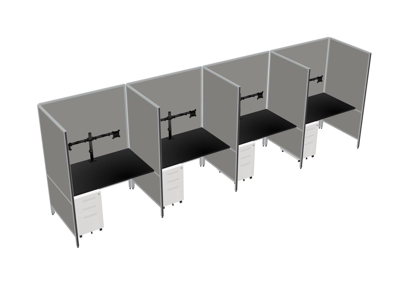 Système De Panneaux Flexibles Noirs Pour 4 Tiroirs Mobiles En Métal + Bras Pour écran (double Bras)