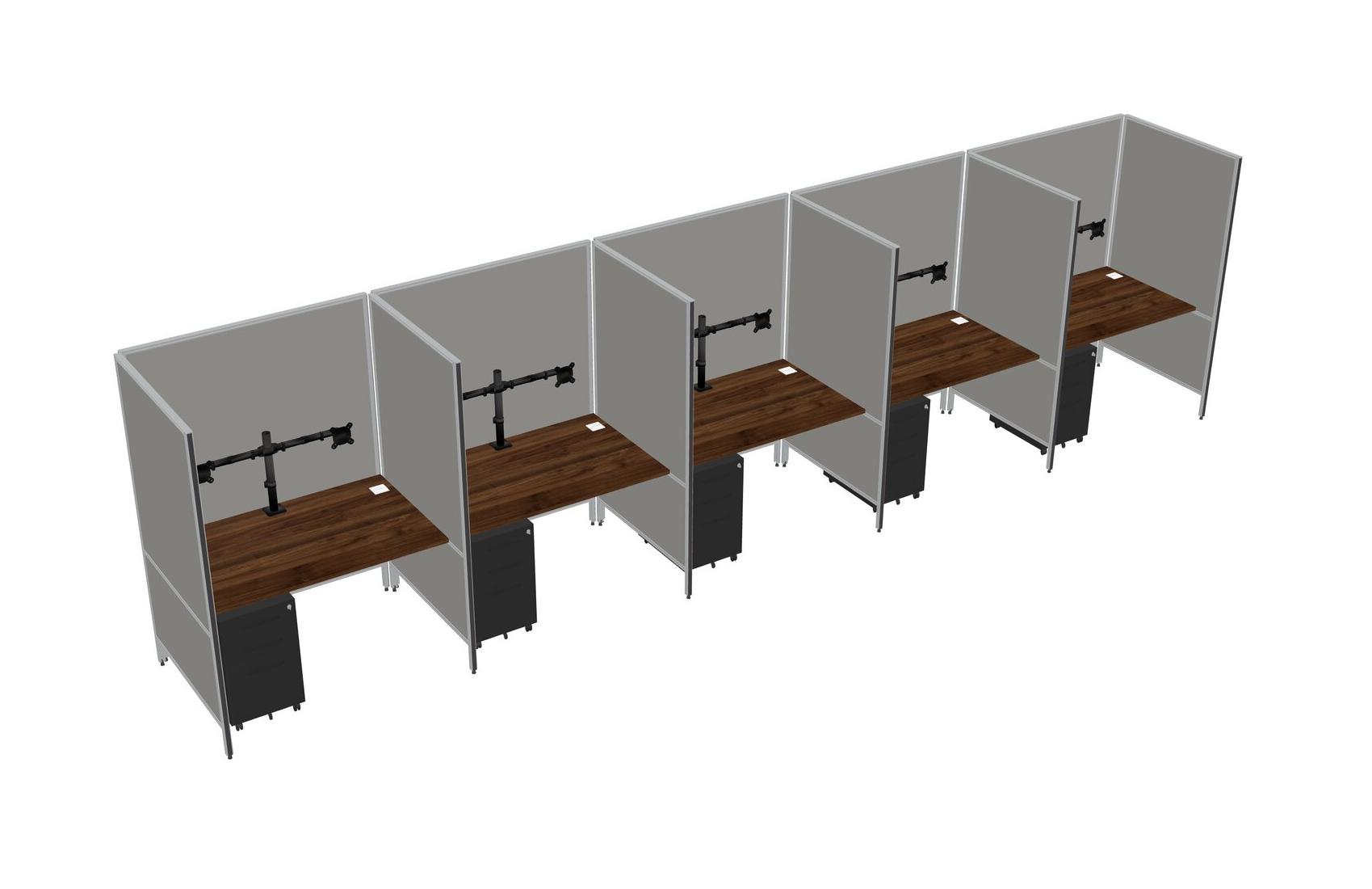 Système De Panneaux Flexibles En Noyer Columbia Pour 5 Tiroirs Mobiles En Métal + Bras Pour écran (double Bras)