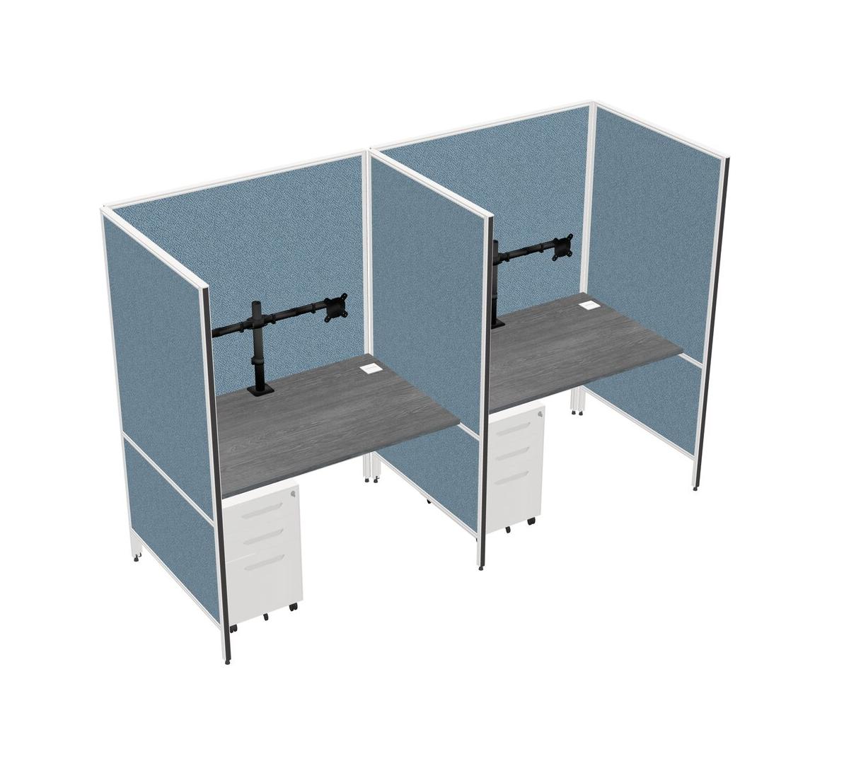 Système De Panneaux Flexibles Gris Pour 2 Tiroirs Mobiles En Métal + Bras Pour écran (double Bras)