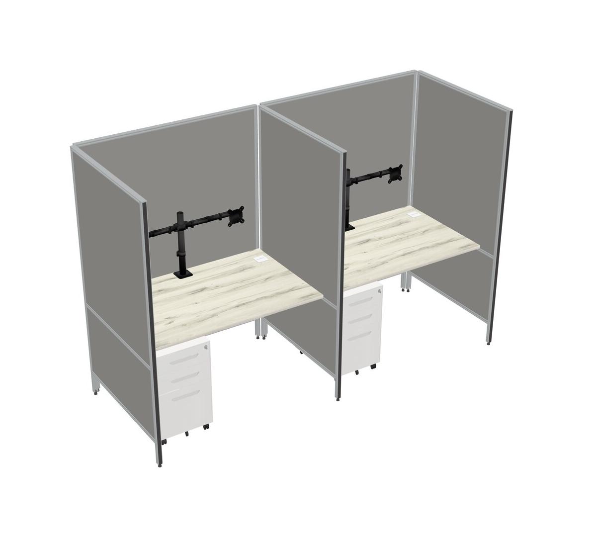 Système De Panneaux Flexibles Heinne Holz Pour 2 Tiroirs Mobiles En Métal + Bras Pour écran (double Bras)