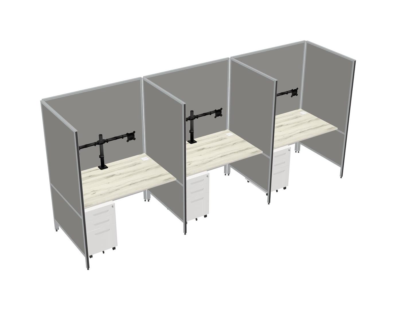 Système De Panneaux Flexibles Heinne Holz Pour 3 Tiroirs Mobiles Métalliques + Bras Pour écran (double Bras)