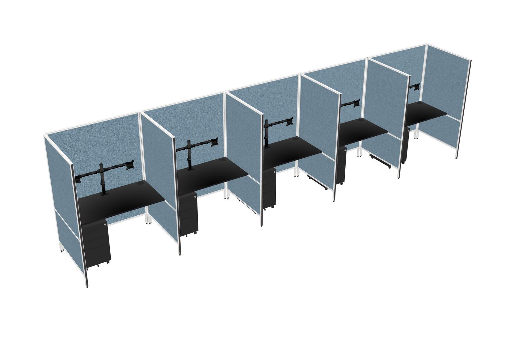 Système De Panneaux Flexibles Noirs Pour 5 Tiroirs Mobiles En Métal + Bras Pour écran (double Bras)