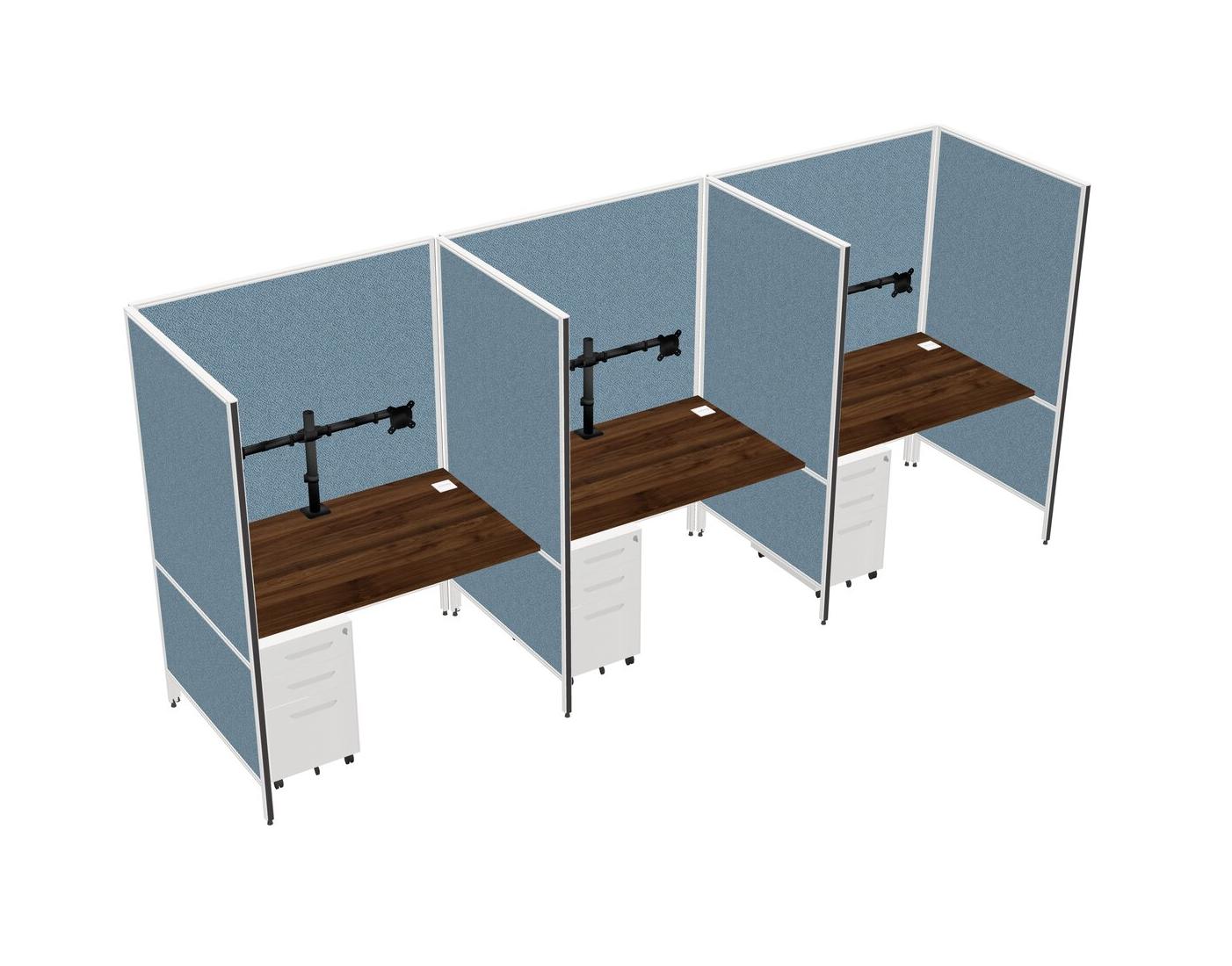 Système De Panneaux Flexibles En Noyer Columbia Pour 3 Tiroirs Mobiles En Métal + Bras Pour écran (double Bras)