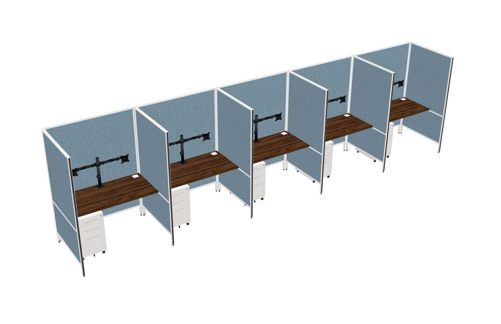 Système De Panneaux Flexibles En Noyer Columbia Pour 5 Tiroirs Mobiles En Métal + Bras Pour écran (double Bras)