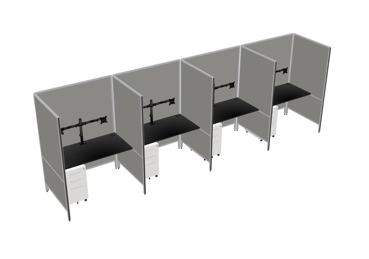 Système De Panneaux Flexibles Noirs Pour 4 Tiroirs Mobiles En Métal + Bras Pour écran (double Bras)