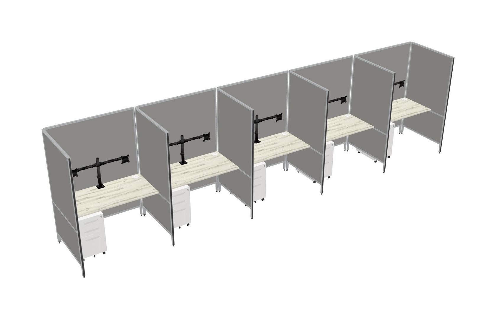 Système De Panneaux Flexibles Heinne Holz Pour 5 Tiroirs Mobiles Métalliques + Bras Pour écran (double Bras)