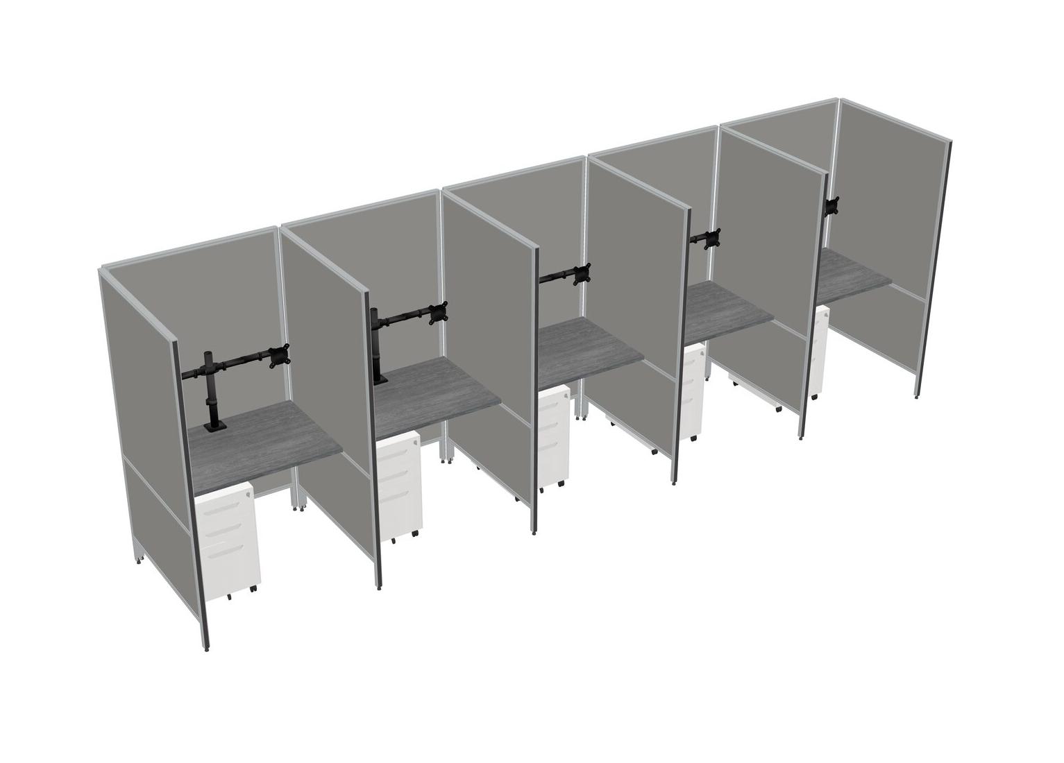 Système De Panneaux Flexibles Gris Pour 5 Tiroirs Mobiles Métalliques + Bras Pour écran (double Bras)
