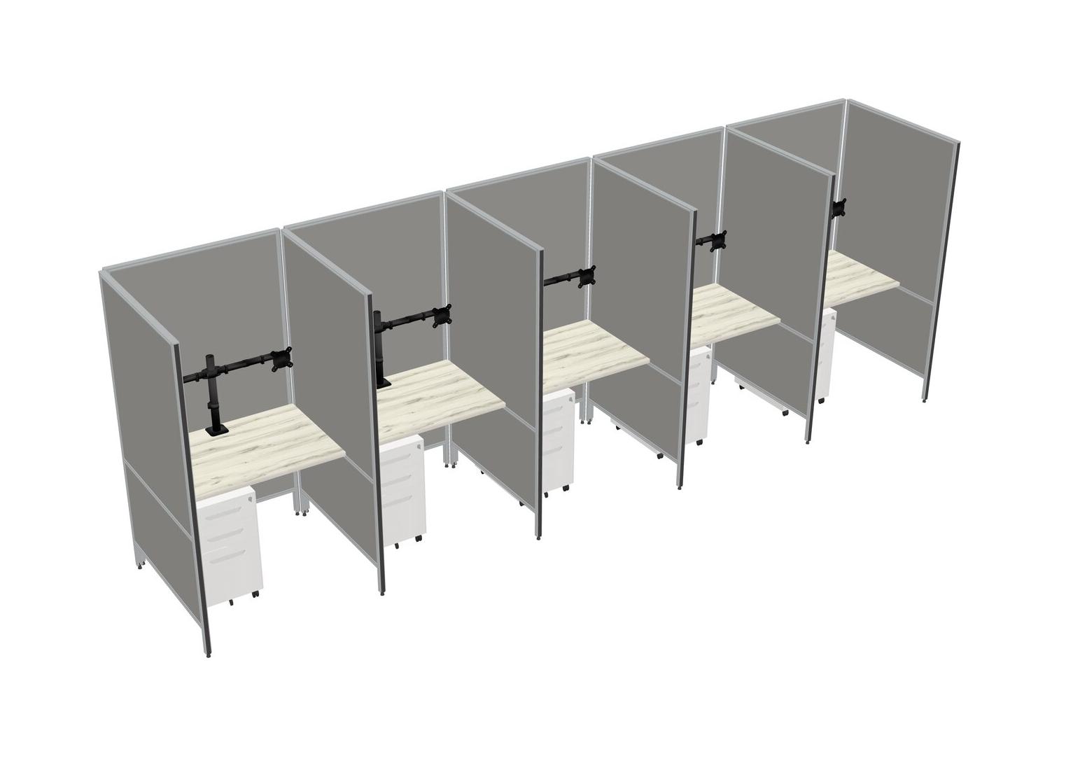 Système De Panneaux Flexibles Heinne Holz Pour 5 Tiroirs Mobiles Métalliques + Bras Pour écran (double Bras)