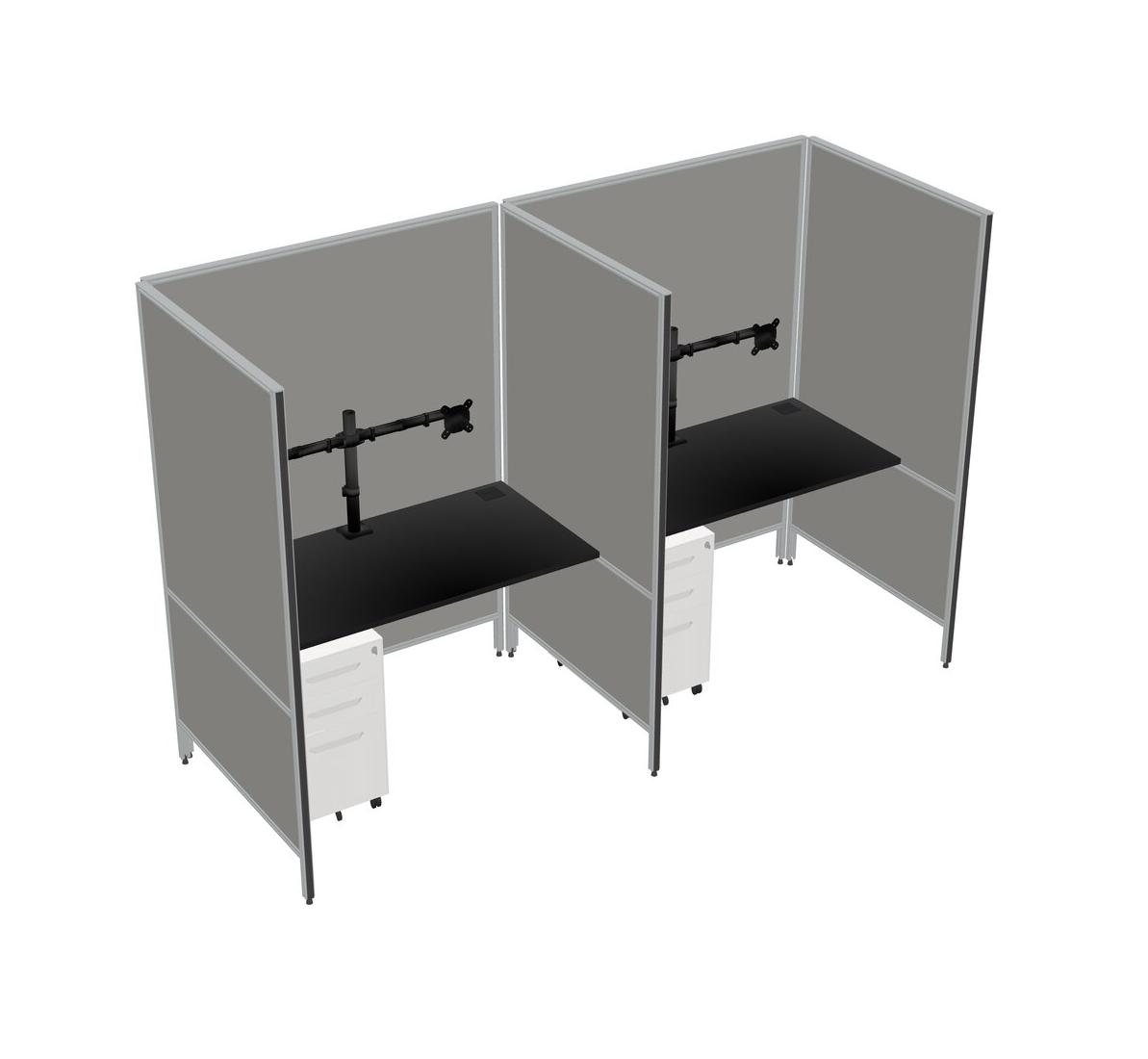 Système De Panneaux Flexibles Noirs Pour 2 Tiroirs Mobiles En Métal + Bras Pour écran (double Bras)