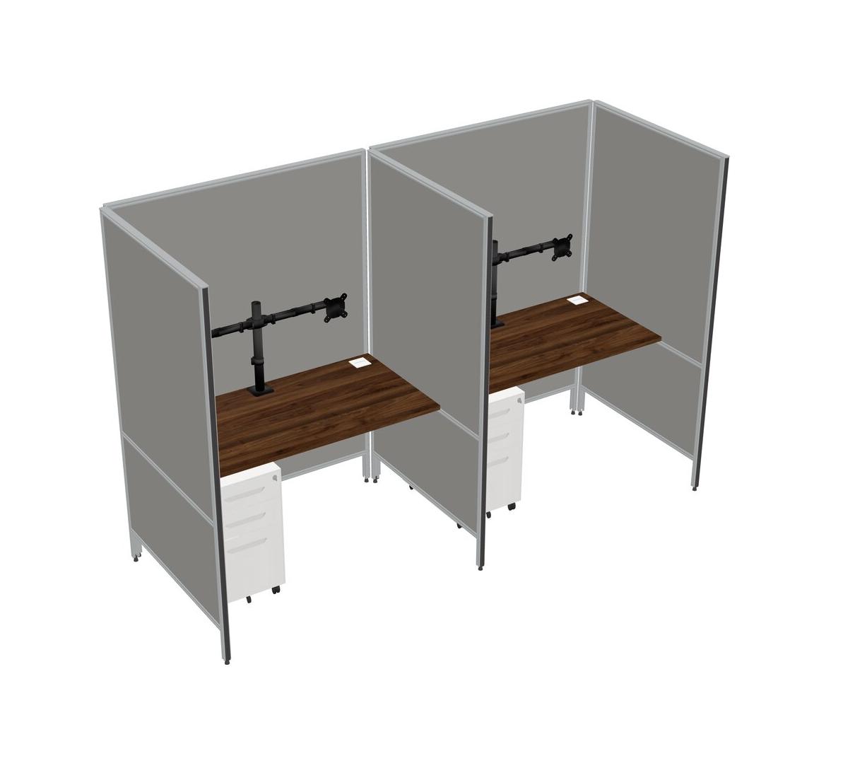 Système De Panneaux Flexibles En Noyer Columbia Pour 2 Tiroirs Mobiles En Métal + Bras Pour écran (double Bras)