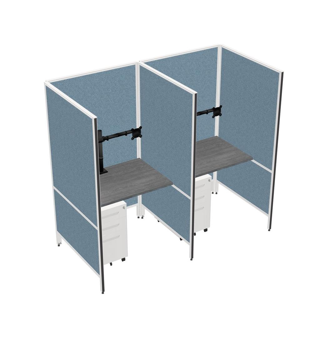 Système De Panneaux Flexibles Gris Pour 2 Tiroirs Mobiles En Métal + Bras Pour écran (double Bras)