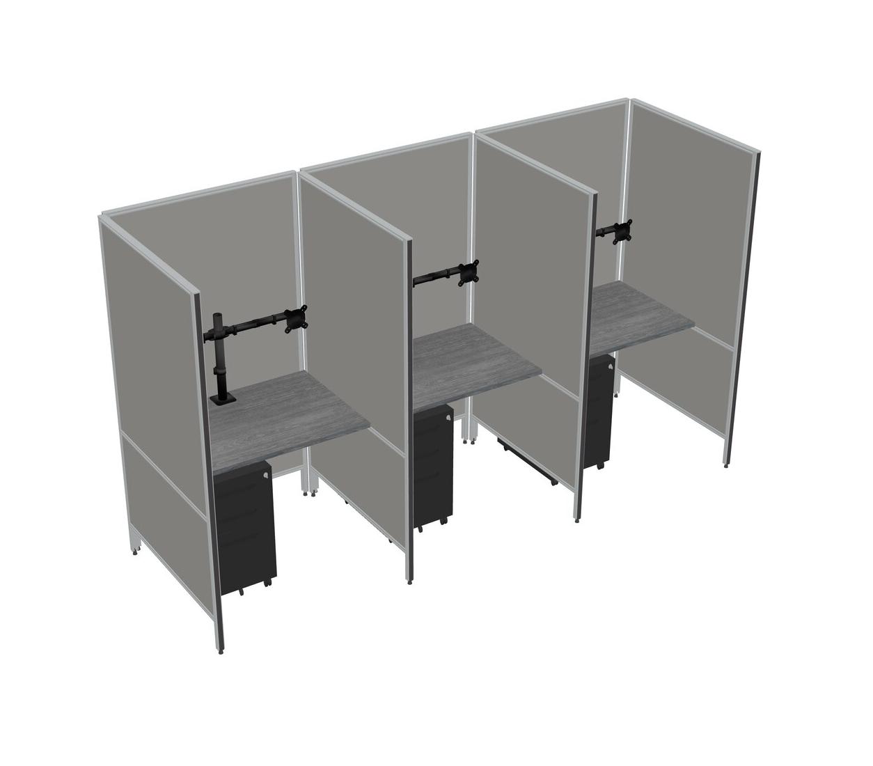 Système De Panneaux Flexibles Gris Pour 3 Tiroirs Mobiles En Métal + Bras Pour écran (double Bras)