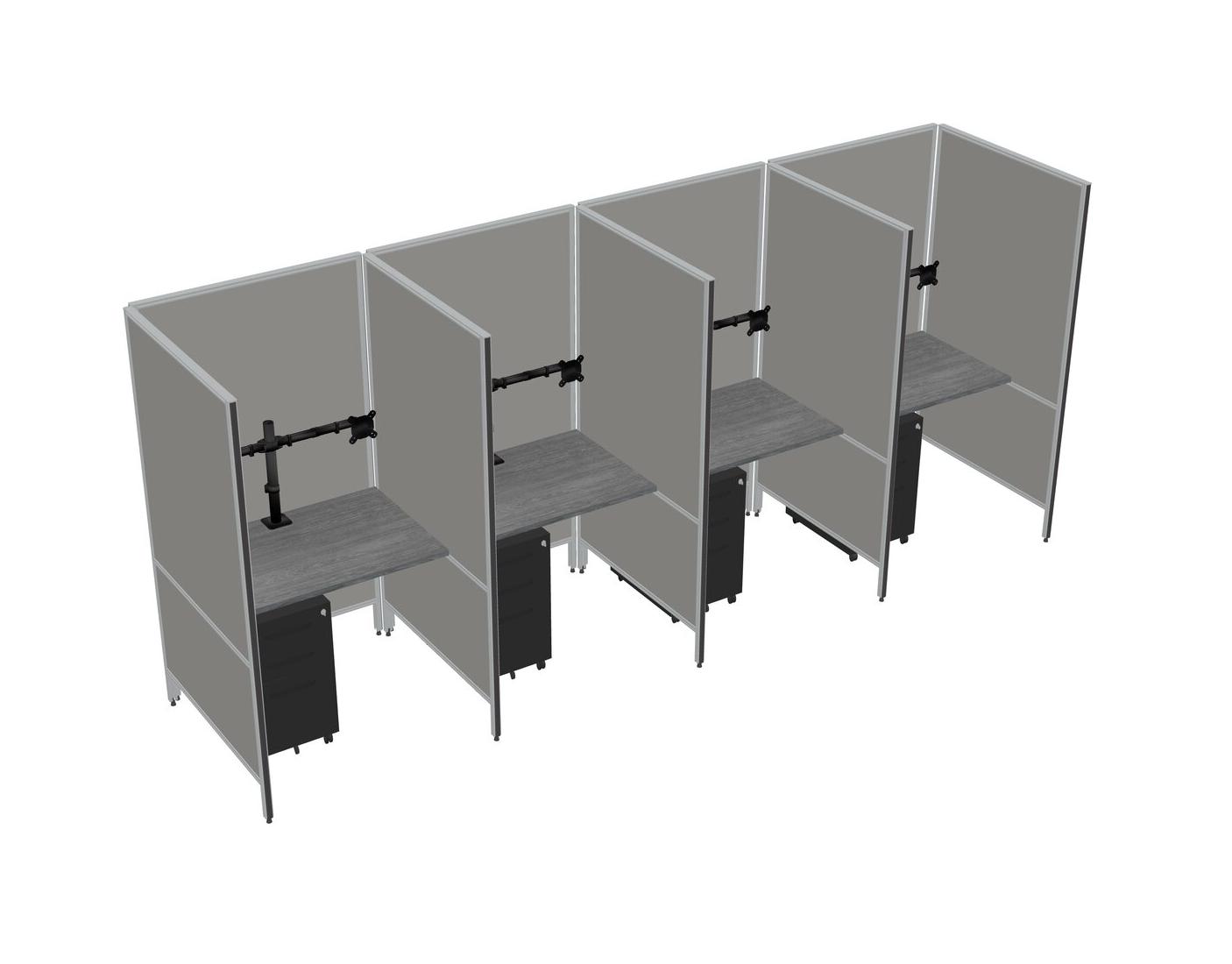 Système De Panneaux Flexibles Gris Pour 4 Tiroirs Mobiles En Métal + Bras Pour écran (double Bras)