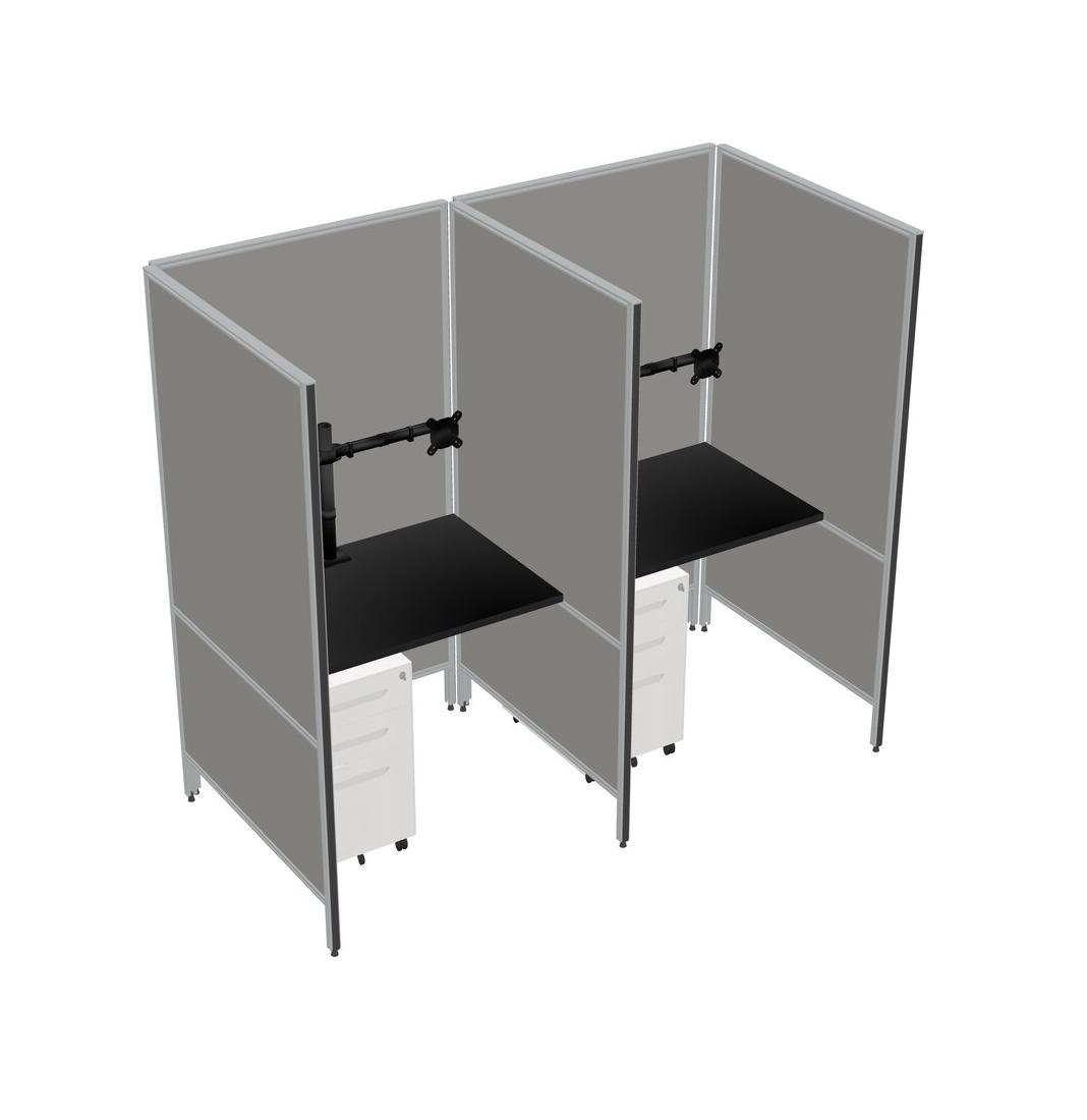 Système De Panneaux Flexibles Noirs Pour 2 Tiroirs Mobiles En Métal + Bras Pour écran (double Bras)