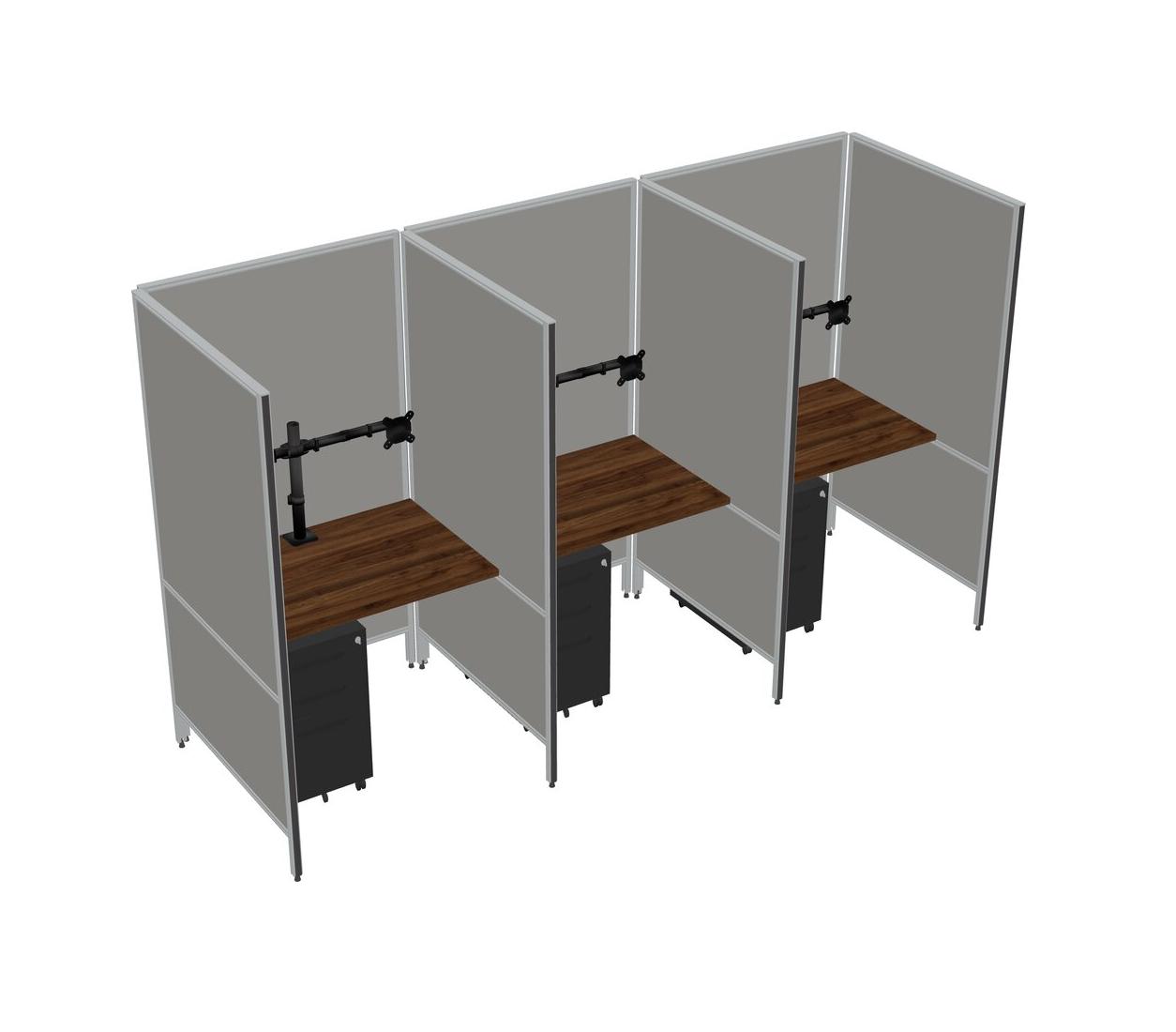Système De Panneaux Flexibles En Noyer Columbia Pour 3 Tiroirs Mobiles En Métal + Bras Pour écran (double Bras)