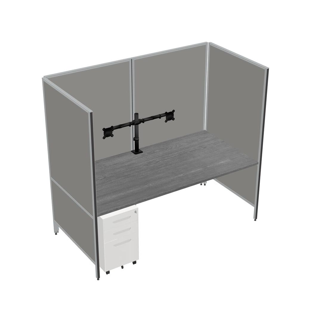 Système De Panneaux Flexibles Gris Pour 1 Tiroir Mobile En Métal Et Bras De Moniteur (double Bras)