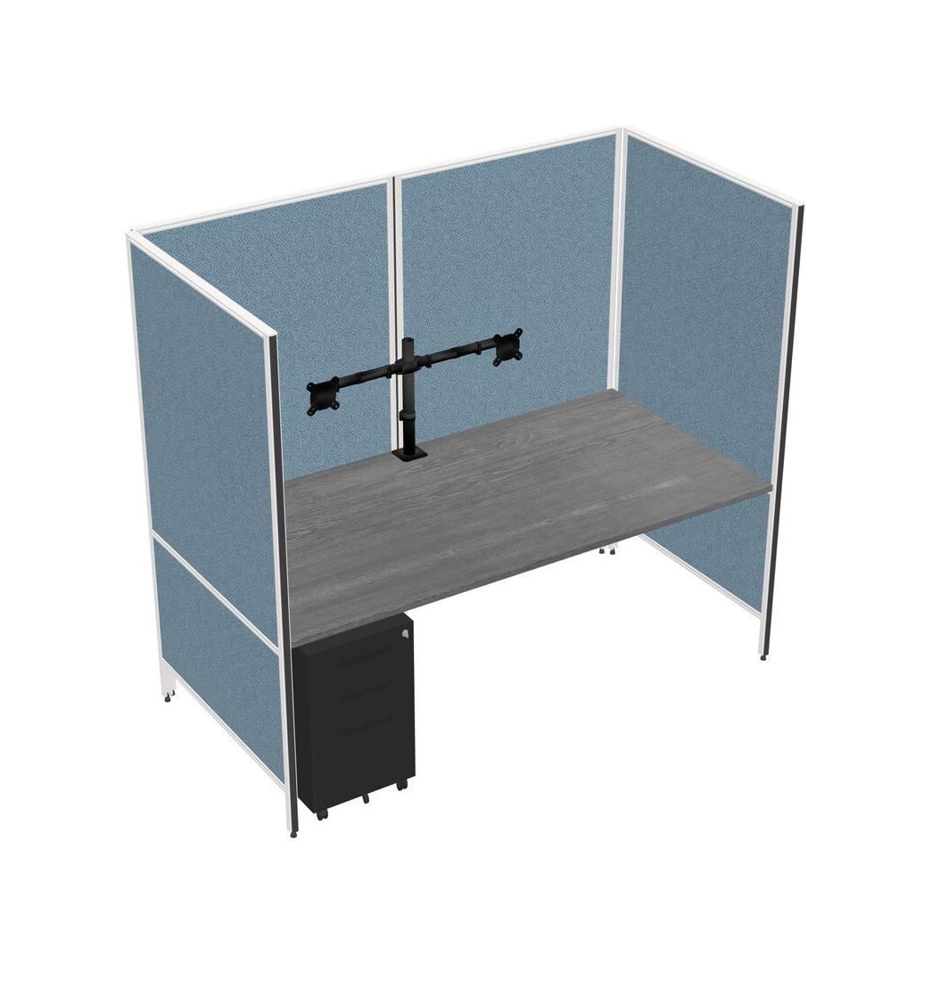 Système De Panneaux Flexibles Gris Pour 1 Tiroir Mobile En Métal Et Bras De Moniteur (double Bras)