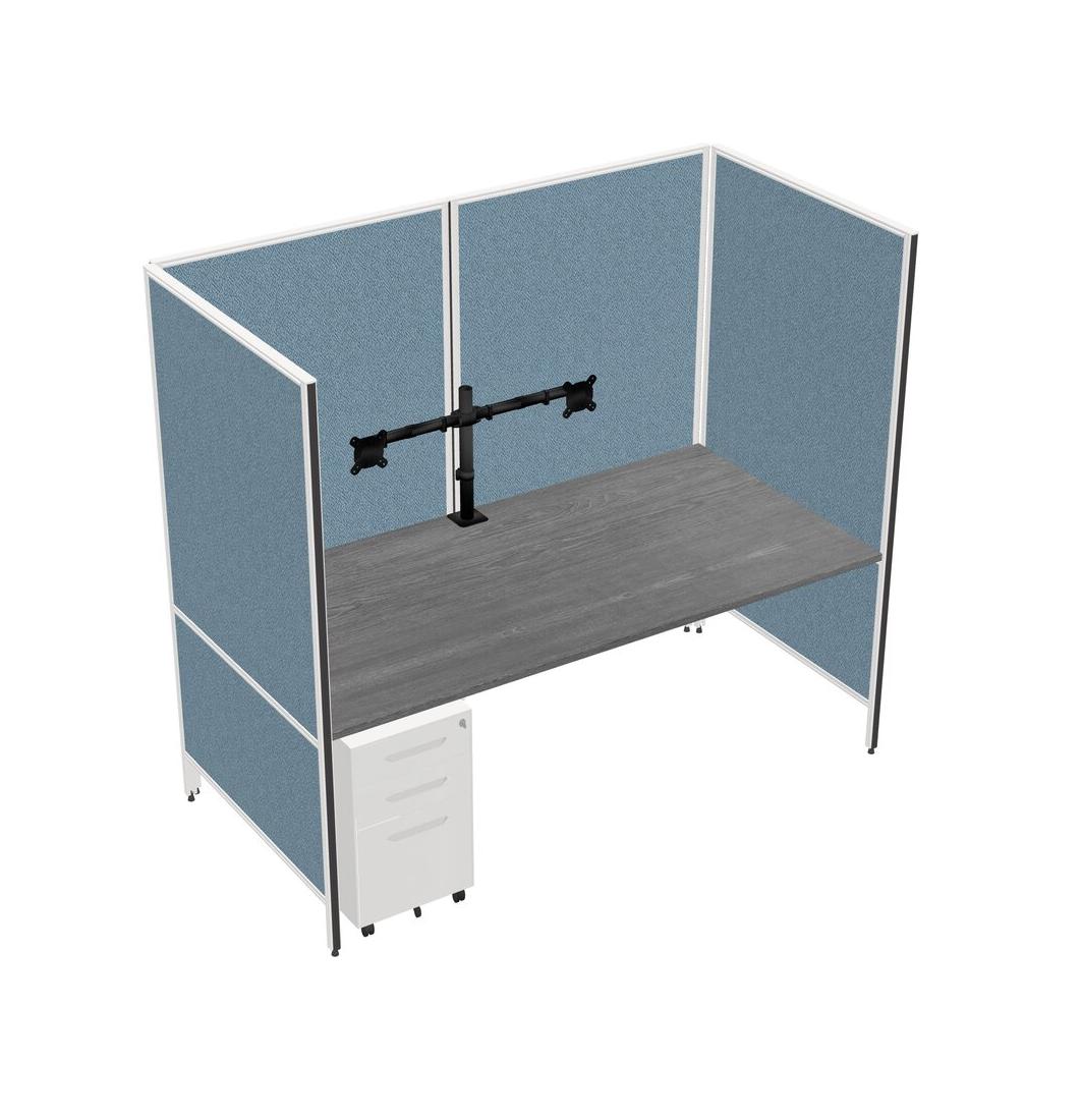 Système De Panneaux Flexibles Gris Pour 1 Tiroir Mobile En Métal Et Bras De Moniteur (double Bras)