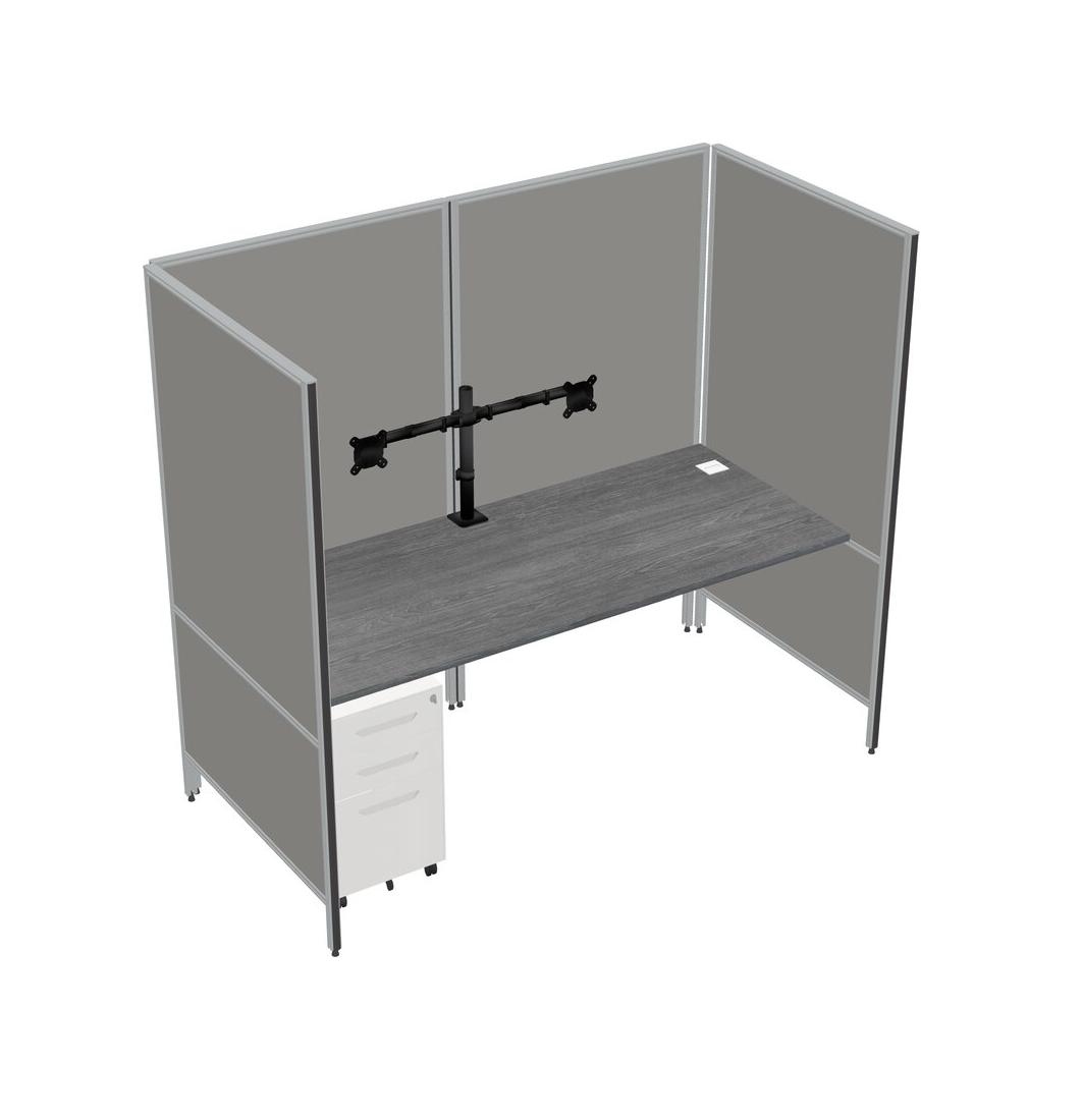 Système De Panneaux Flexibles Gris Pour 1 Tiroir Mobile En Métal Et Bras De Moniteur (double Bras)
