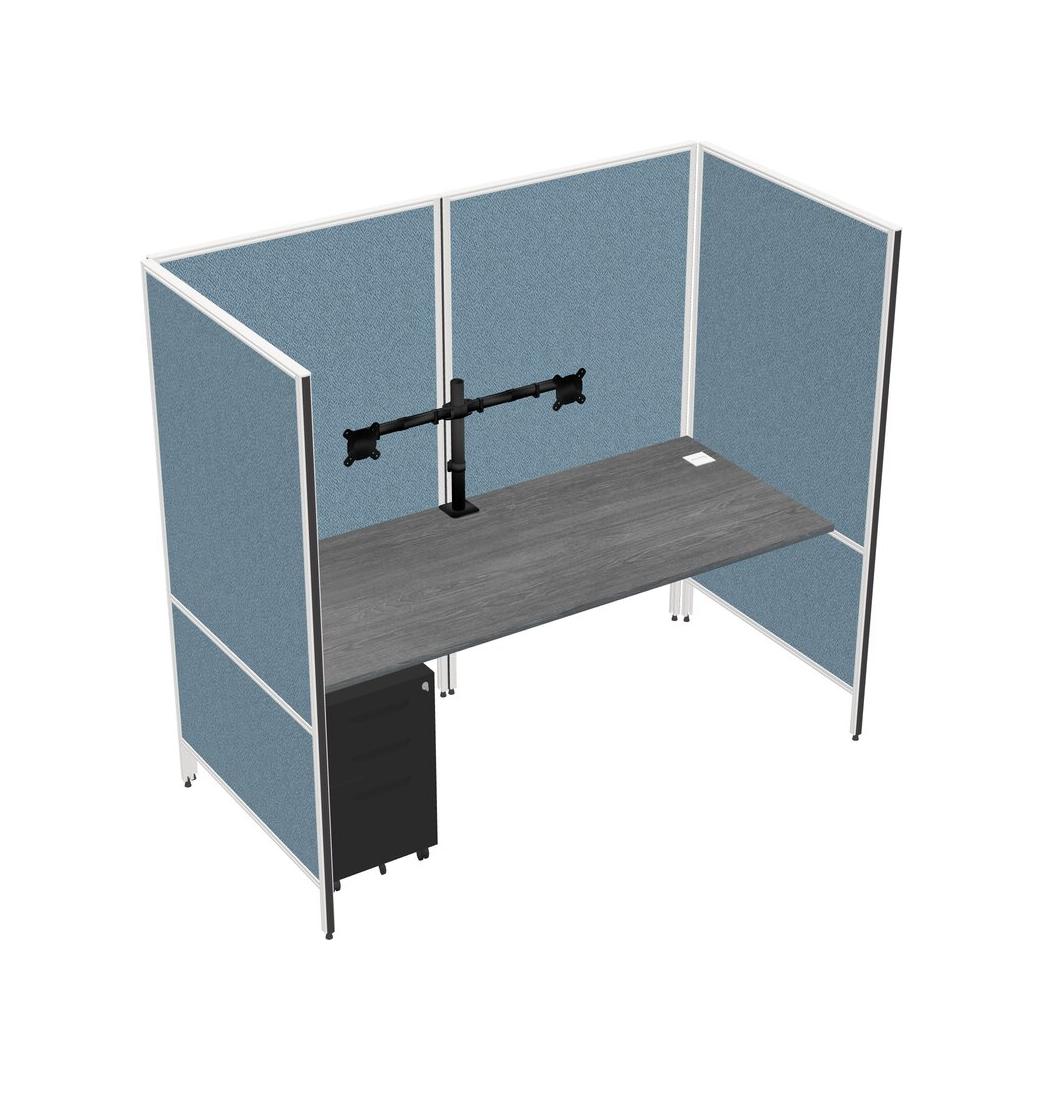 Système De Panneaux Flexibles Gris Pour 1 Tiroir Mobile En Métal Et Bras De Moniteur (double Bras)