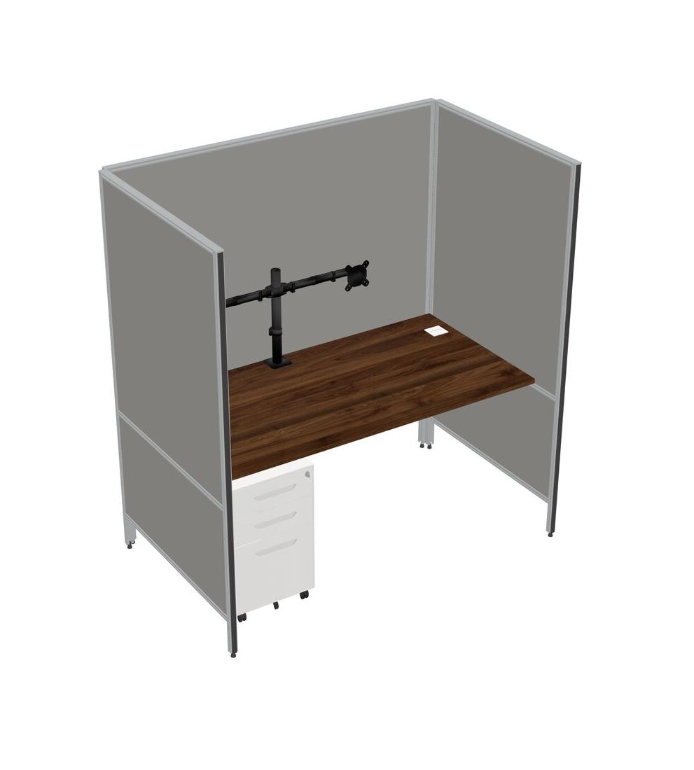 Système De Panneaux Flexibles En Noyer Columbia Pour 1 Personne + Tiroirs Mobiles En Métal + Bras Pour écran (double Bras)